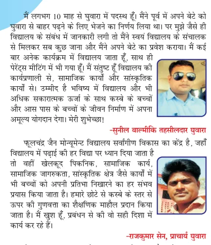 PHOOLCHANDRA JAIN MONUMENT SCHOOL provide best education to the children. The purpose to nurture the unique potential of the student entrusted in our care. It aims to offer a liberal and enlightened environment in education to keep pace with the dynamic trends, which is eco-friendly, pollution free, well built and equipped with latest artifacts, it lies in the heart of the city.