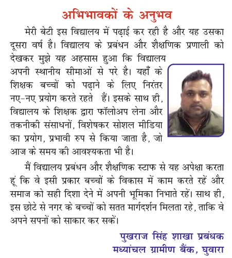 "School is an excellent place for learning and development of students. Education is treated as worship here. All the faculties are extremely supportive and knowledgeable. All the subjects as well as concepts are taught thoroughly using simple and easy method".